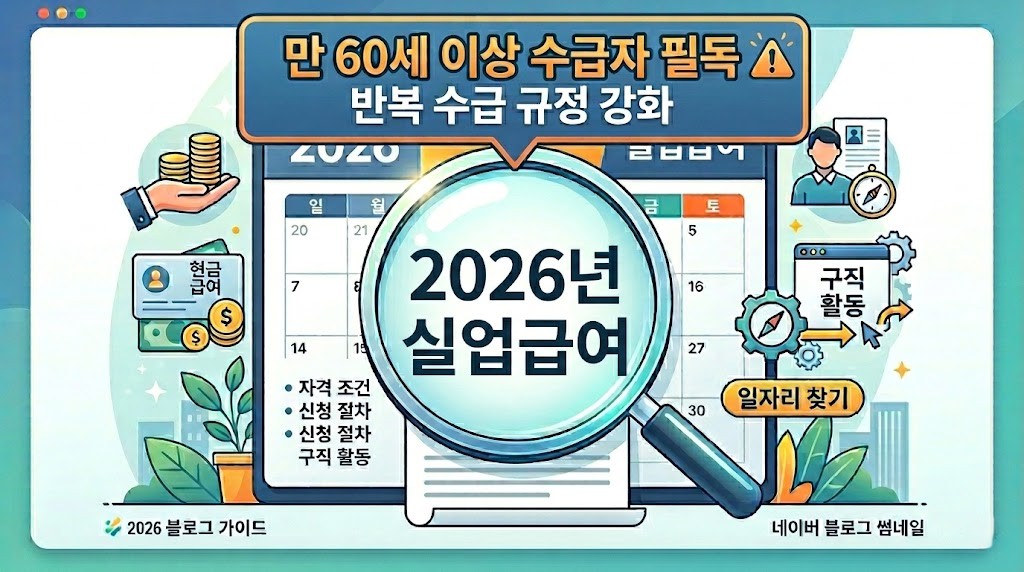 실업급여 수급을 위한 기본적인 자격 요건은 유지되지만, 2026년부터는 실업인정 기준과 구직활동 증빙이 더욱 엄격해집니다. 특히, 만 60세~64세 신청자 등 고령층 구직자들의 실업인정 기준 또한 전반적인 강화 흐름 속에서 더욱 면밀히 적용될 것으로 예상됩니다.