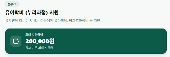 | 혜택 | 유아학비, 방과후과정비 등 지원 |